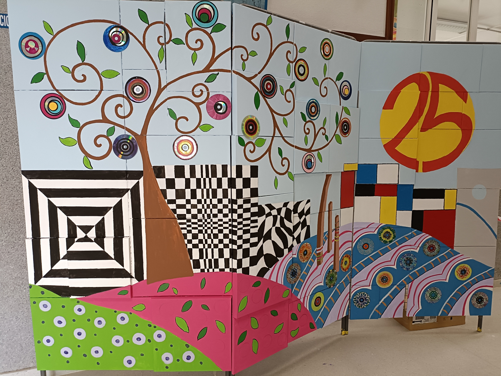 A continuación os presentamos el último trabajo realizado por nuestro alumnado de Expresión Artística de 4º de la ESO que, en esta ocasión, ha estado reciclando Cds de audio y reutilizando lienzos como decoración con motivo del XXV aniversario de nuestra Pedrera Blanca. ¡Muchas gracias como siempre por vuestra inestimable colaboración!