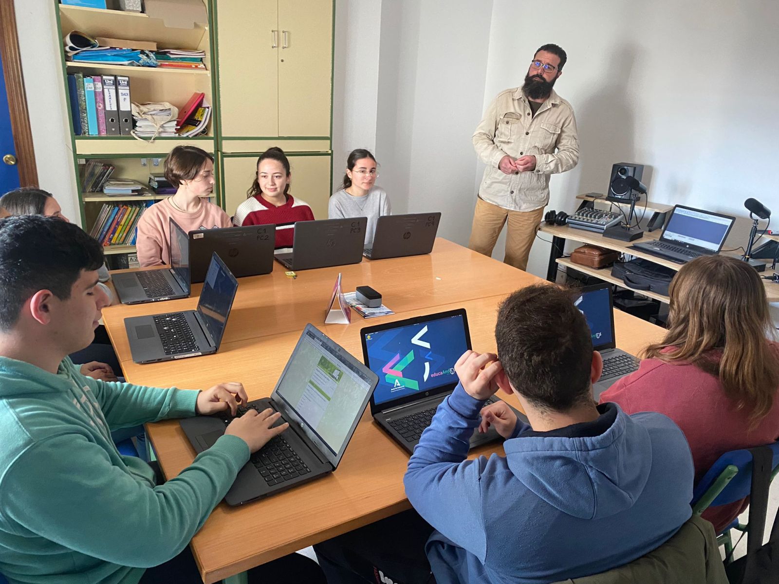 El pasado jueves 9 de enero el alumnado de Ciclos Formativos de Grado Superior (1º y 2º GAT y 1º GIAT) y el alumnado del segundo curso del Ciclo Formativo de Grado Básico del centro tuvieron la oportunidad de recibir una formación específica de prevención de riesgos laborales relacionada con los primeros auxilios y la gestión de emergencias en el ámbito profesional. Gracias a la colaboración de la TCAE Elixabete Gómez Marín, del Síndicato SAE y trabajadora en activo del Hospital Puerta del Mar de Cádiz, nuestro alumnado pudo actualizarse en el conocimiento del manejo de las principales situaciones de emergencias de salud que pueden acontecer en el ámbito profesional y, como no, social en general.