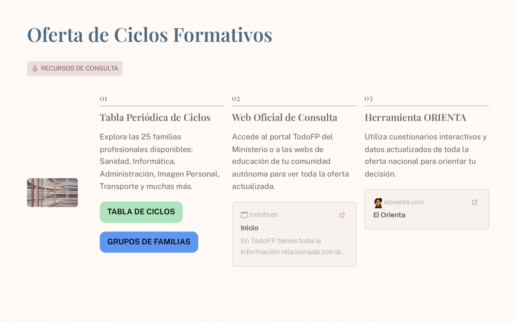 Otro enlace que funciona bien en Orientación Vocacional, es la web El Orienta. Puedes acceder así: