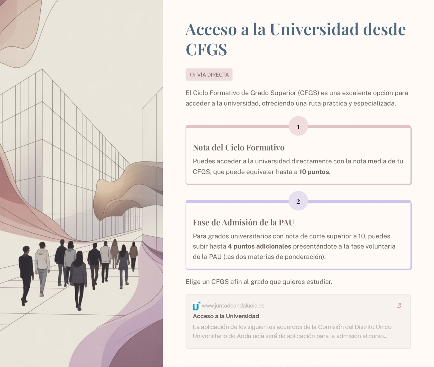 Te puede servir asimismo de gran interés echar un buen vistazo a la Guía de Orientación Académica y Profesional que emite la Consejería de Educación de la Comunidad Andaluza: